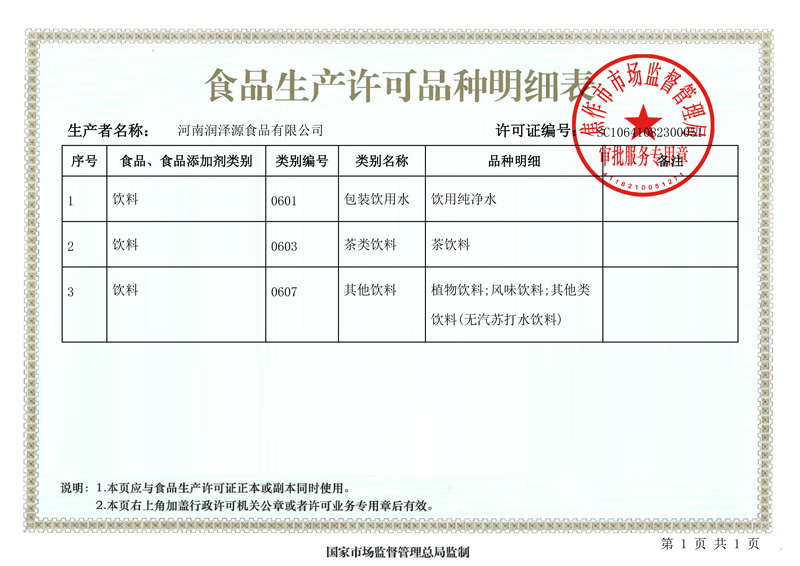 食品生產許可品種明細表
